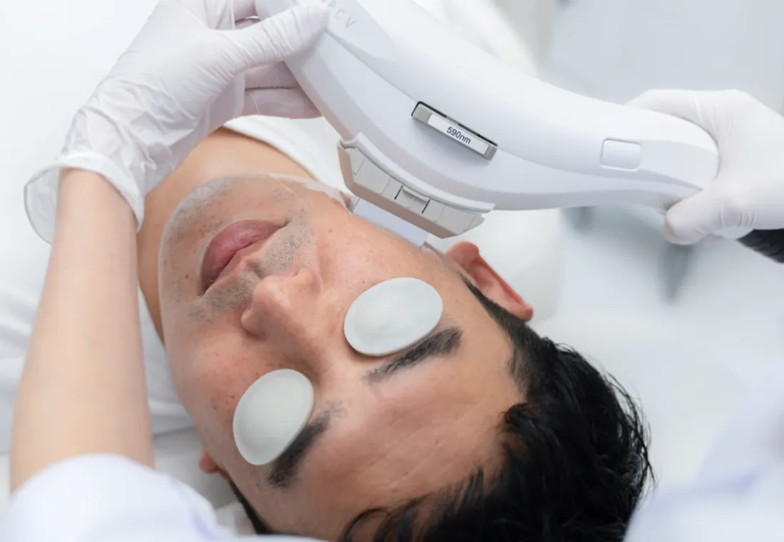 フォト光治療は、シミやくすみ、毛穴、肌のハリ・ツヤ、肌のキメが整うなど、さまざまな肌トラブルを一台の機器で改善できます。治療中の痛みも少なく、美容医療がはじめてという方でも試しやすい施術です。