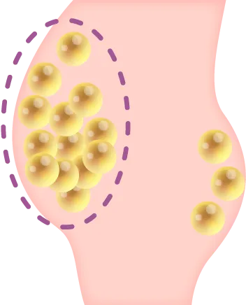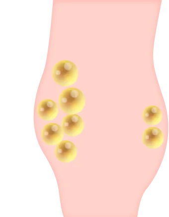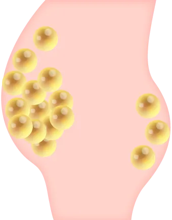 凍った脂肪細胞が結晶化し代謝によってゆっくりと体外へ排出されます。