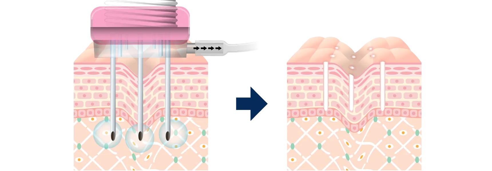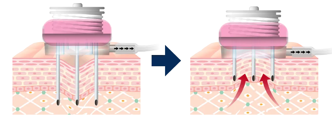 皮膚に陰圧をかけ、吸引しながら極細針を同時に挿入するため、術中の痛みも少なく済みます。