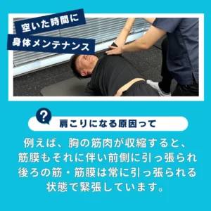• ご来院してからご帰宅まで!サクッと30分 身体の姿勢改善・柔軟性の向上 ちょこっとコンディショニング 身体の不調は肩こりから