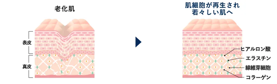 肌育治療は、肌の奥にある真皮層へ働きかけます。
