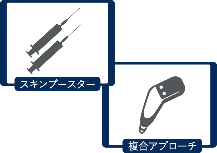 肌育治療では、目的や肌の状態に合わせて 注射 と 複合アプローチ の2種類から選択できます。
