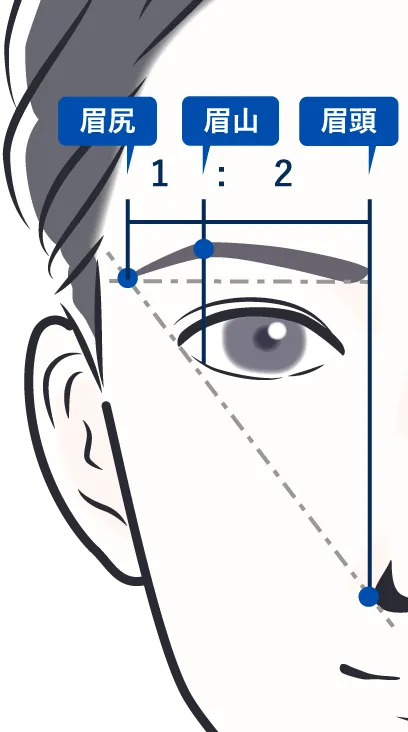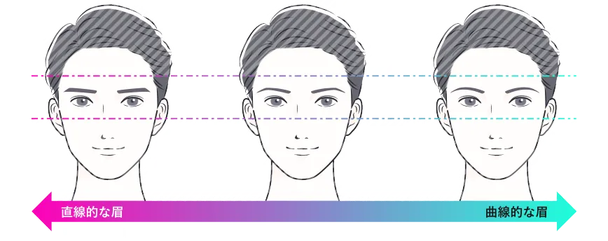 眉毛と目の距離は、男性の第一印象に関わるほど重要なポイントです。眉毛と目の距離が近いと、外国人のような彫りの深い目力のある印象を与えられます。対して眉毛と目の距離が遠いと、優しく中性的な印象を与えられるでしょう。当院は、患者様のもとの眉毛の形を活かしながら、眉毛の上部または下部に色を入れていき、眉毛と目の距離も考慮しながらデザインを行います。今よりもっと目力が欲しい、優しい印象になりたいなどのご希望に沿って施術することで、理想の目元の形成が可能です。