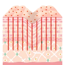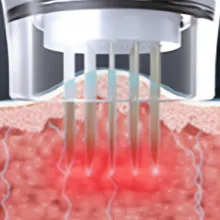 高周波(RF)の熱照射によって肌細胞(線維芽細胞)が活性化され、さらに極細針によってできた肌の傷には、自然な創傷治癒効果が働きます。通常のマイクロニードル治療以上の高い効果が期待できます。