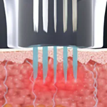 微細な針を肌に刺した瞬間に、RF照射を行い、空気圧を利用して薬剤を真皮層に効率よく送り込みます。このメカニズムにより通常よりも効果が高まり、短期間での肌の改善が期待できます。