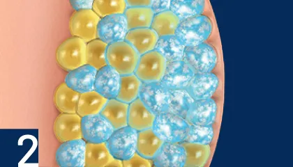 凍った脂肪細胞が結晶化し代謝によってゆっくりと体外へ排出されます。
